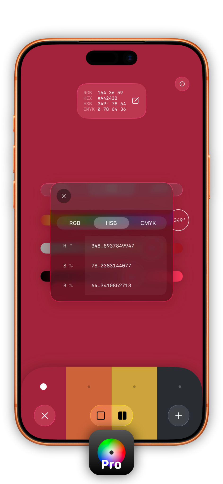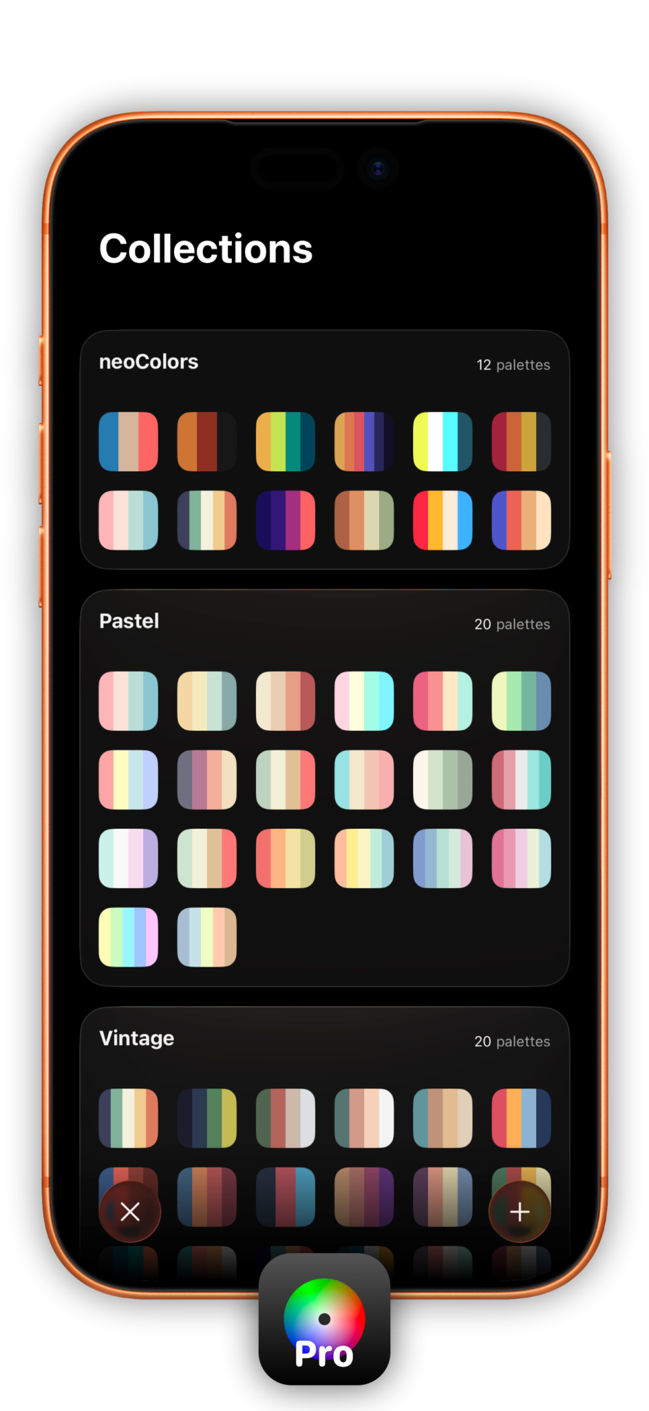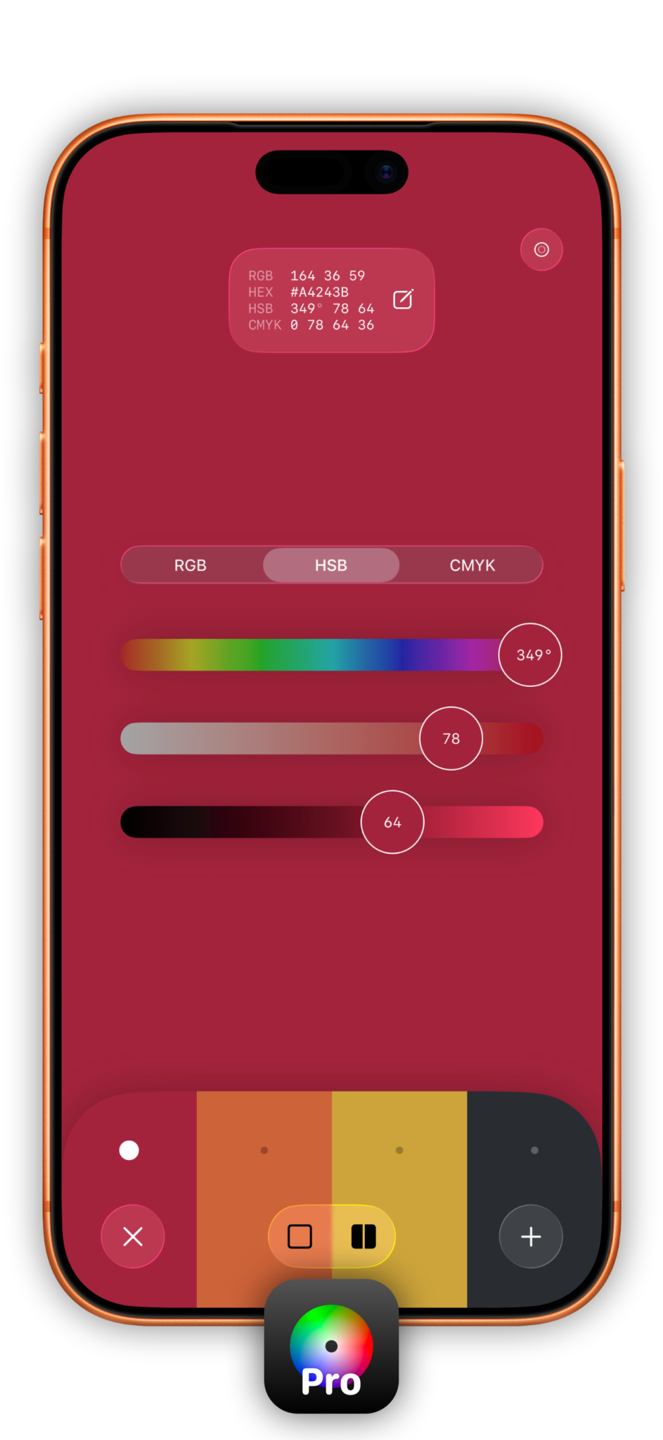 - Share palettes as values, palette images and device wallpapers (flat or gradient).